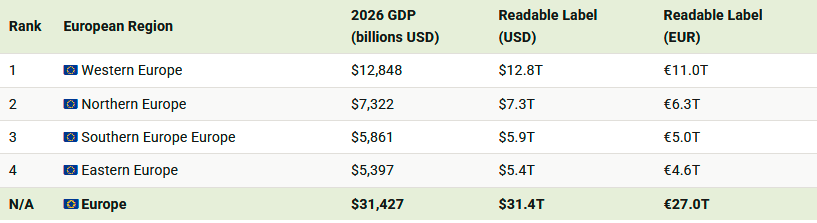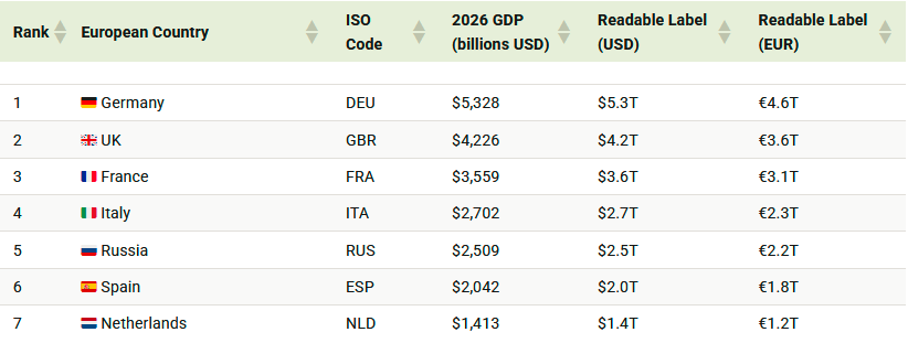 In questo 40% si collocano anche Paesi come il Regno Unito, con un PIL nel 2026 stimato a 3,6 miliardi di euro, e la Francia (3,1 miliardi), pur gravata da un debito pubblico sempre più insostenibile.