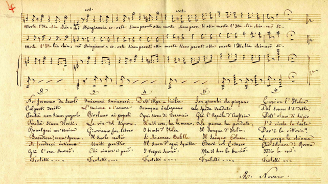 “Il canto degli italiani”, tuttavia, non si presta a differenti esecuzioni, variabili anche nella lunghezza e nel ritmo, come la Nona sinfonia di Beethoven. Il compositore Michele Novaro, che musicò la poesia di Goffredo Mameli alla fine del 1847, ci lasciò nello spartito indicazioni inequivocabili. Il finale si raggiunge in un crescendo nel quale quel “Sì!” rappresenta l’immortale sillaba che chiude una delle pagine più intense del Risorgimento, dalle quali sgorga quell’impronta marziale che deve essere contestualizzata.